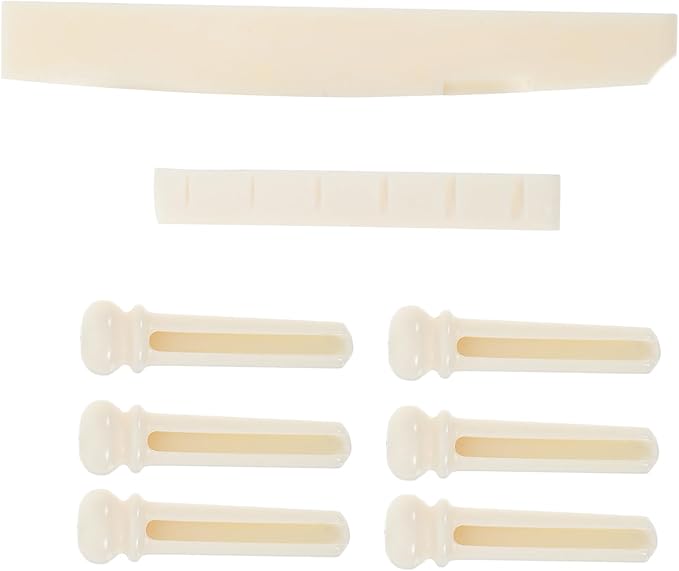 Gitar köprüsü eyeri ve somunu – halk gitarı eyeri, somunu ve köprü mandalları, gitarınızın tını performansını artırabilecek pratik yedek parçalardır.