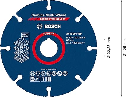 1x EXPERT Carbide Multi Wheel Kesici Diskler (Sert ahşap, Çivili ahşap, Plastik, Alçıpan panel, Ø 125 mm, Aksesuar Küçük Avuç Taşlama Makinesi)