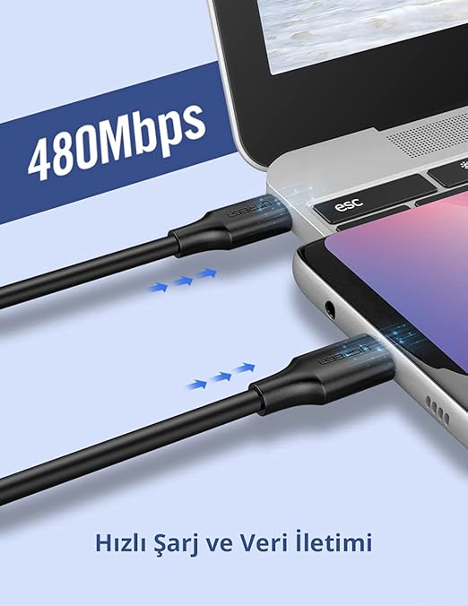 Type-C to type-C şarj ve veri aktarım kablosu