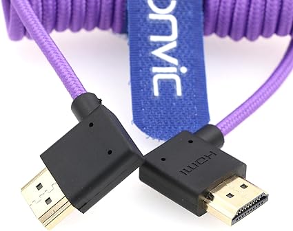 2.1 8K HDMI – HDMI Kablosu Yüksek Hızlı İnce HDMI Erkek – Erkek Genişletici Mor Sarmal Kablo Atomos Ninja V, Sony a7siii, Portkeys BM5 Monitör (Sağ HDMI-Sol HDMI, Mor)