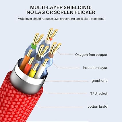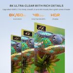 Yüksek Hızlı 2.1HDMI, Destek 8K (7680* 4320) 10K (10240* 4320) geriye 4K ile uyumlu, 4K’dan 4 kat daha net, daha ayrıntılı resim kalitesi ekranı.8K/60Hz 4K@120Hz, 48Gbps toplam bant genişliği, HDR görüntü ekranı, 3D stereoskopik görüntülemeyi destekler, Dolby Atmos, eş zamanlı ses ve video çıktı.