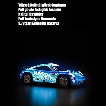 2.4 Ghz RC Full Fonksiyon LED Işıklı Gövde 1:22 Şarjlı Uzaktan Kumandalı Drift Arabası (mavi)