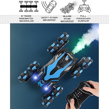 Oyuncak 2.4 Ghz Uzaktan Kumandalı Full Fonksiyon Drift Atan 8 Teker Buharlı Akrobat Araba (kırmızı ve mavi iki renk seçeneği)