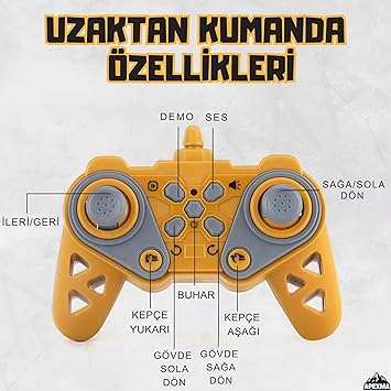 Gerçekçi Buhar Efekti:Arka kısımdan çıkan buhar dumanı ile inşaat alanı atmosferi yaşatır. Paletli Hareket Sistemi:Tıpkı gerçek iş makineleri gibi engebeli zeminlerde güçlü ve dengeli ilerleme sağlar. 2.4GHz Uzaktan Kumanda:Gelişmiş frekans sistemi ile kesintisiz ve çoklu araç kullanımında sinyal karışması olmadan sürüş keyfi. LED Işıklar:Gece ve karanlık ortamlarda oyun deneyimini daha da etkileyici hale getirir. Şarjlı Batarya:Uzun süreli kullanım için şarj edilebilir batarya ile donatılmıştır. Kendi inşaat alanını kur, görevleri tamamla, makineni buharla çalıştır! Gerçekçi detaylarla dolu bu ekskavatör, oyunları bambaşka bir seviyeye taşıyor.