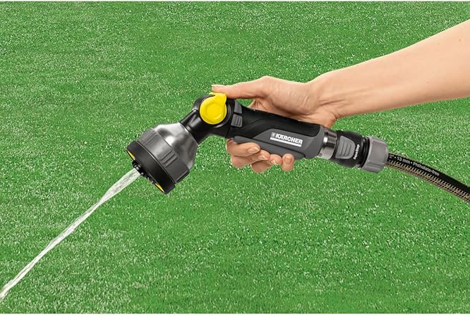 Sprey tabancası ince sis ve kalem püskürtmeli sprey desenleriyle tüm sulama ihtiyaçları için ve ayrıca bahçe aletlerinin temizlenmesi için kullanılabilir