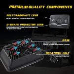 Yenilikçi D-Şekilli Projektör Lensi: Özel ikili D-şekilli projektör lensi, en iyi ışık şekline katkıda bulunarak daha geniş ve daha uzak bir aydınlatma aralığı sağlar. Solunum deliği tasarımı, nemin dışarı atılmasına izin vererek farların nemli koşullarda bile en iyi şekilde çalışmasını sağlar.