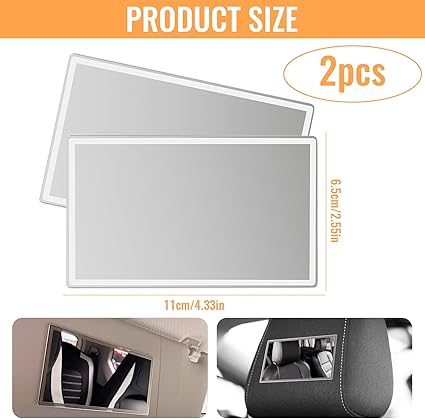 Yüksek kaliteli malzemeler: Paket içerisinde 2 x 110 x 65 mm araç kozmetik aynası bulunur, ayna yüzeyi paslanmaz çelikten oluşur. Güvenli ve uzun ömürlüdür, paslanmaz ve sıradan cam aynalar kadar kırılgan değildir.