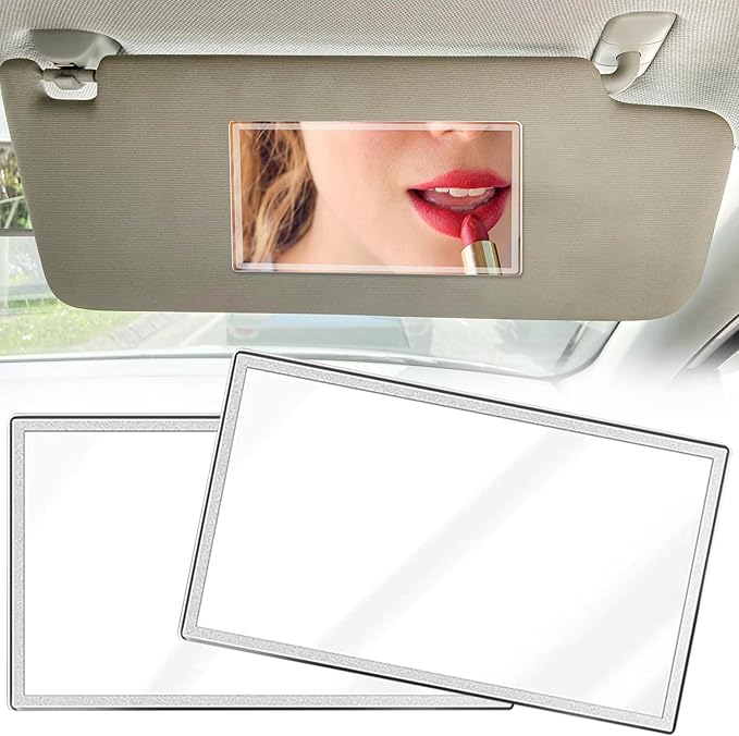 2 adet araç kozmetik aynası, paslanmaz çelik, araç güneşliği, HD makyaj aynası, güneş koruması, kozmetik aynası, güneşlik, araba, banyo veya yatak odası duvarı için (4,3 x 6,6 inç)