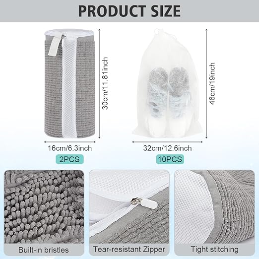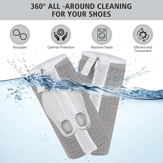 2 adet ayakkabı torbası, çamaşır makinesi, ayakkabı yıkama torbası, ayakkabı yıkama torbası, 360° temizleme tüyü ve fermuar, tekrar kullanılabilir file ayakkabı, çamaşır torbası, çamaşır