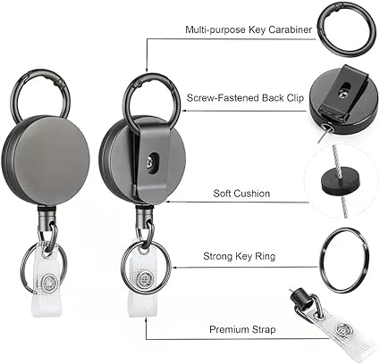 【Dayanıklı Malzeme】Klipsli dayanıklı rozet tutucusu, yüksek kaliteli ve dayanıklı tamamen metal çinko alaşımından yapılmıştır. Çinko alaşımlı karabina, anahtarlık, arka klips rulosu ve PVC rozet tokası ile donatılmış olup, kemerlere, sırt çantalarına vb. Kolayca takılabilir hemşireler, sağlık ve ofis personeli, öğretmenler, öğrenci personeli vb. İçin geri çekilebilir rozet tutucular için en iyi resmi araç.