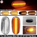 2 Adet Dinamik LED Yan Marker Işıkları Ok Dönüş Sinyali Yanıp Sönen Flaşör Lambası Mito 955 147 GT 937 Fiat Bravo 2 (şeffaf)