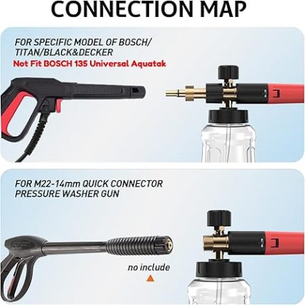 Bosch 110/120/125 Aquatak Black & Decker AR Mavi Temiz, Kar Köpük Tabancası Ayarlanabilir 1L, Bosch Basınçlı Yıkama Aksesuarları için Kar Köpük Lance Top Şişesi