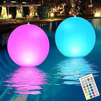 2 adet güneş yüzen top havuz ışığı RGBW renk değiştiren havuz şamandıra ışığı IP68 su geçirmez uzaktan kumanda zamanlama asılabilir atmosfer ışığı avlu bahçe çim plaj için