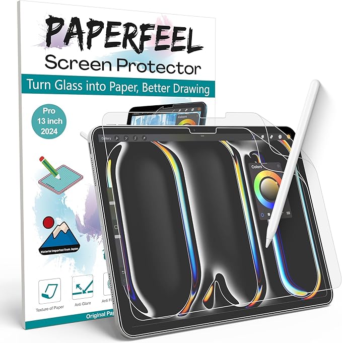 Paperfeel iPad Pro 13 inç 2024 için ekran koruyucu folyo: Tabletin camı sayesinde kolayca ve yanlış kayar, bu da not almaya ve ayrıntıları çizmeye çalışırken, özellikle düz çizgiler hayal kırıklığına uğratır. Paperfeel yüzeyi artık tabletinizde çizim veya yazma için kağıdın dokunma hissi ve dayanıklılığı oluşturur.