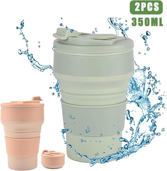2 adet katlanabilir kupa, katlanabilir kahve kupası, katlanabilir seyahat kupası, seyahat kamp bardağı, silikon katlanır bardak, taşınabilir silikon bardak, su bardağı, katlanabilir, BPA içermez, kamp