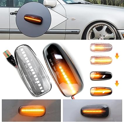 2 adet Led Dinamik Yan Gösterge Işığı, Çalışan Çamurluk Işık Yan Tekrarlayıcılar Flaşör Lambası Mercedes W210 W202 R170 W638 Kristal Beyaz Sarı Işık