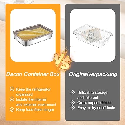 [Gıda Sınıfı 304 Paslanmaz Çelik]: Buzdolabı için Pastırma Saklama Kutusu, gıdaya doğrudan temas edebilen 304 paslanmaz çelikten yapılmıştır ve bu da onu sıradan plastik kutulardan daha dayanıklı ve daha güvenli hale getirir. Ve yüzey pürüzsüz, bulaşık makinesinde yıkanabilir, kullanımdan sonra doğrudan bulaşık makinesine konur, eller serbest bırakılır, temizlenmesi kolaydır