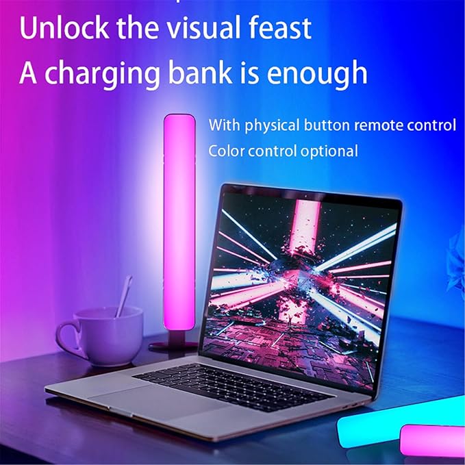 2 adet RGB Led Işık Çubuğu, Çok Konumlu Tabanlı Renkli Çok Renkli Yatay/Dikey LED Şerit Işıklar, Müzik Ritmi Ortam Lambası, IR Kontrol USB Işık, Ev Dekor Oturma Odası, Duvar Dekoru
