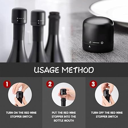 ★ 【Kullanımı kolay】: Şarap tapasının üst kısmını açık konuma getirin, ardından şarap tapasını şişe ağzına yerleştirin ve son olarak şarap tapasının üst kısmını kapalı konuma getirin.