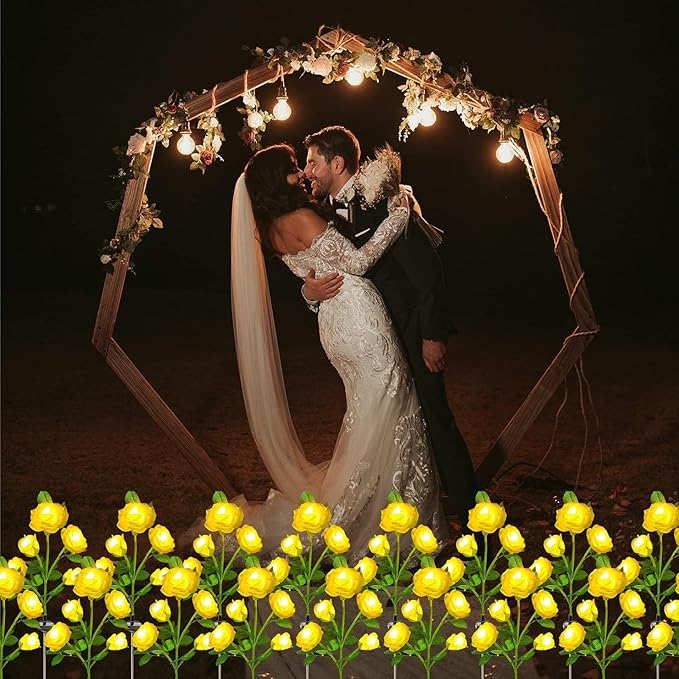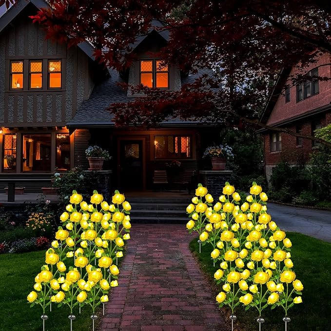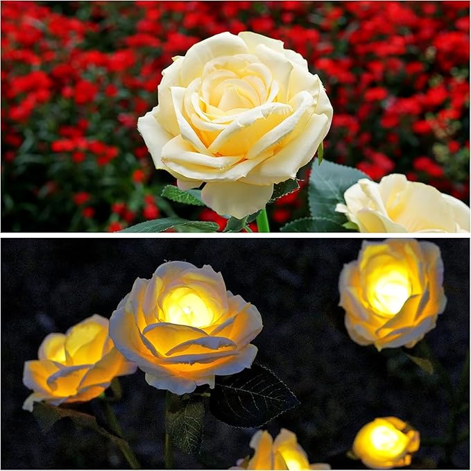 Gerçekliği Artırılmış Tasarım: SARI gül dalı şeklindeki ışıklar, bahçenize veya dekorasyonunuza romantik bir hava katar. SARI Gül dalı şeklindeki aydınlatmalar, gerçeğe yakın yapay çiçeklere sahiptir ve bahçenize doğal bir görünüm katar.Güller gerçekçi bahçe gülleri şeklinde simüle edildiği için, sabah olduğunda da yapay bir görünüm oluşturmaz.