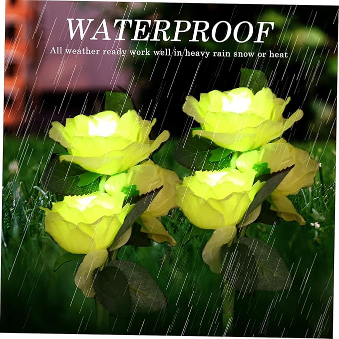 Çok Yönlü Kullanım: IP65 su geçirmezlik derecesine sahip olan bu aydınlatmalar, patika, veranda, balkon, havuz kenarı ve peyzaj süslemeleri için uygundur.Solar Bahçe Gül Işıkları-IP65 su geçirmez solar çiçek ışıkları dış mekan bahçe su geçirmez, dışarıda bırakılacak kadar dayanıklıdır, her türlü havada çalışır ve aydınlatmaya devam eder. Paslanmaz çelik kazık, solar ışıkları zeminde sıkıca tutar, rüzgarlı havalarda kırılmasını ve kaybolmasını önler.