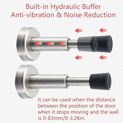 【Hidrolik Şok Emici Teknoloji】Kapı duvarla temas ettiğinde, kapı durdurucu yaklaşık 20 mm/0,79 inç (±3 mm) mesafeye kadar yavaşça geri çekilir, ardından yavaşça konumuna geri döner. Bu nedenle, yerleşik hidrolik şok emici, kapının çarpmasını veya çarpmasını daha da azaltabilir ve gürültüyü