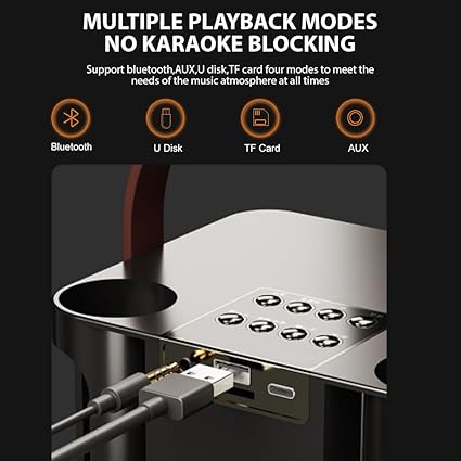 [Gelişmiş BT Teknolojisi] : Bu karaoke makinesi, cihazlarınızla istikrarlı ve yüksek kaliteli bağlantı sağlayan en son BT 5.3 teknolojisiyle donatılmıştır. TV’ler ve akıllı telefonlarla BT bağlantısını destekler ve ana karaoke uygulamalarıyla uyumlu olup kusursuz bir şarkı söyleme deneyimi sağlar.