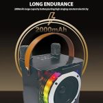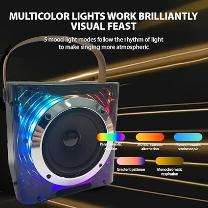 [Atmosfer Işığıyla Taşınabilir Tasarım]: Bu karaoke makinesi kompakt ve taşınabilirdir, dahili 2000 mA pil ve kullanışlı bir taşıma kayışı ile kamp ve piknik gibi açık hava etkinlikleri için mükemmeldir. RGB atmosfer ışığı şarkı söyleme seanslarınıza eğlenceli ve şenlikli bir dokunuş katar.