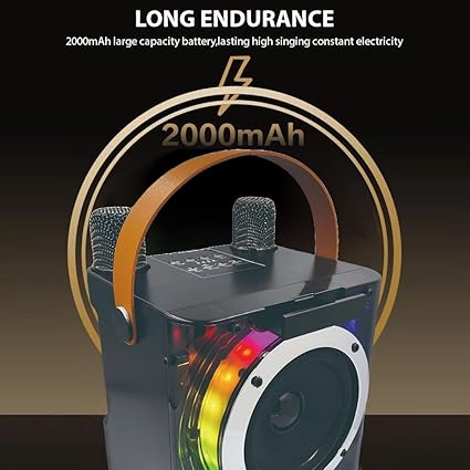 [Güçlü Hoparlör ve Uzun Çalma Süresi] : Karaoke makinesinde net ve güçlü ses sağlayan 10W hoparlör bulunur. Tamamen şarj olması 2-3 saat sürer ve 3-5 saat boyunca oynayabilir, bu da pilin bitmesinden endişe etmeden karaoke seanslarınızın keyfini çıkarmanıza olanak tanır.