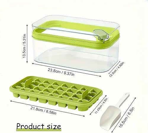 2 Katlı Buz Kalıbı Saklama Kabı Seti, Kürekli, 64 Bölmeli (Yeşil)