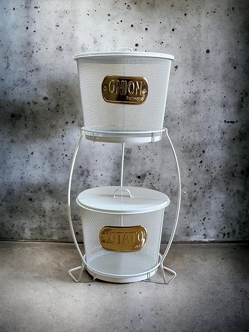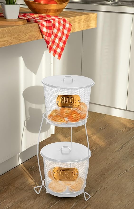 Evde patates ve soğan gibi sebzeleri düzenli bir şekilde saklamak ve depolamak için pratik bir çözüm arıyorsanız, 2 Katlı Metal Patates Soğan Kovaları tam size göre!