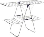 2 Katlı Paslanmaz Çelik Çamaşır Kurutma Askısı, Yüksekliği Ayarlanabilir Kanatlı, Ayaklı, Katlanabilir, Mavi LLR53BU, 156 x 61 x 113 cm