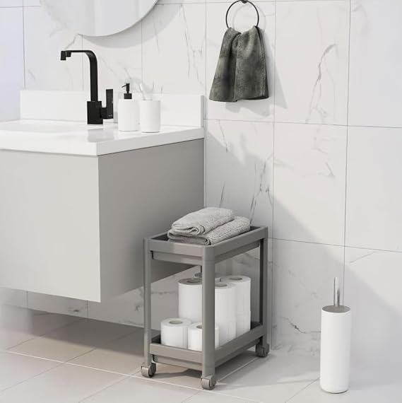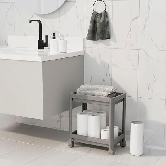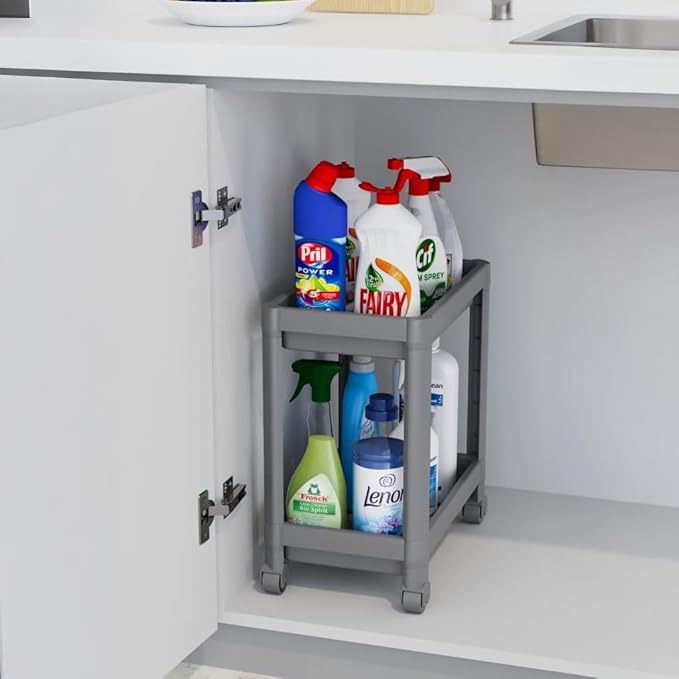 YER TASARRUFU VE HAREKETLİLİK: 2 katlı tekerlekli tasarım, mutfak tezgah altı, banyo dolabı, ardiye veya depoda dar alanları verimli kullanır – kolayca kaydırın, düzeni koruyun!