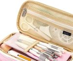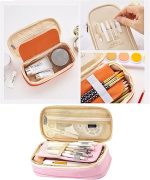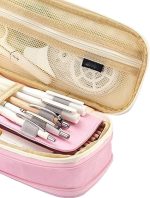 BÜYÜK KAPASİTE — Bu büyük kalem çantası, 2 katmanlı tasarıma ve geniş kapasiteye sahiptir ve gerekli eşyalarınız için yeterli alan sağlar. Silgi, zımba, makas, klips, kalem boya kalemi, kalemtıraş, kauçuklar, kalemler ve kurşun kalemler, cetveller vb. için geniş alan.