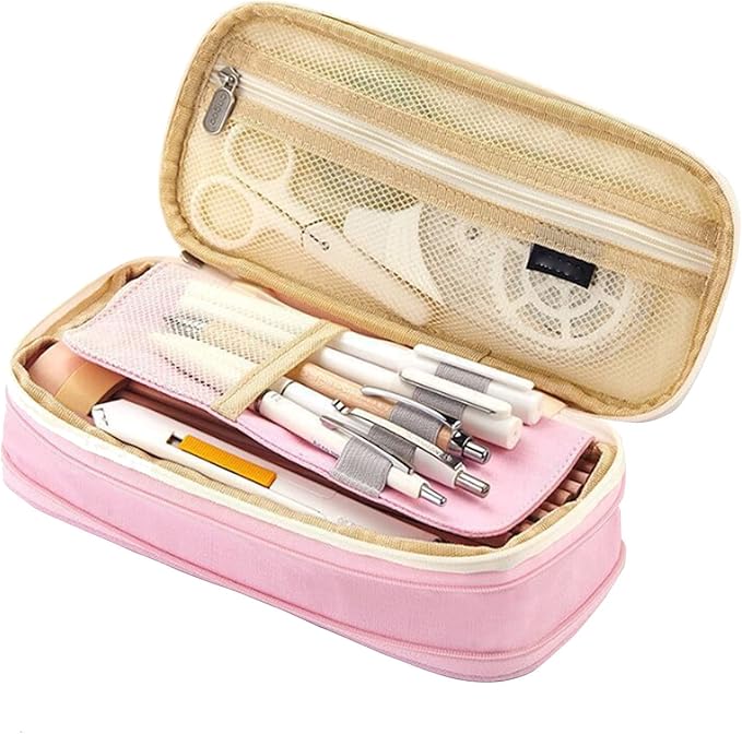 BÜYÜK KAPASİTE — Bu büyük kalem çantası, 2 katmanlı tasarıma ve geniş kapasiteye sahiptir ve gerekli eşyalarınız için yeterli alan sağlar. Silgi, zımba, makas, klips, kalem boya kalemi, kalemtıraş, kauçuklar, kalemler ve kurşun kalemler, cetveller vb. için geniş alan.
