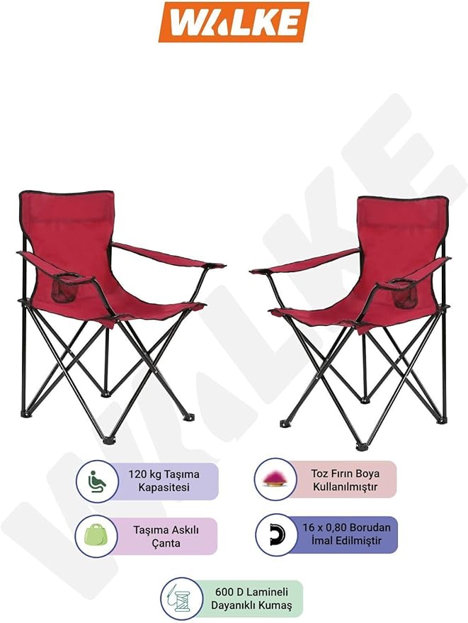 2 Li Katlanabilir Kamp Sandalyesi Piknik Sandalyesi Plaj Sandalyesi Kırmızı Taşıma Çantalı