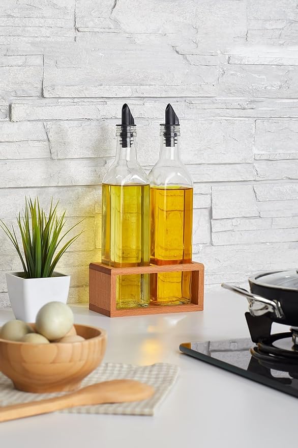 2 Li Yağdanlık Seti 500 Ml, Ahşap Stantlı Yağlık Sirkelik