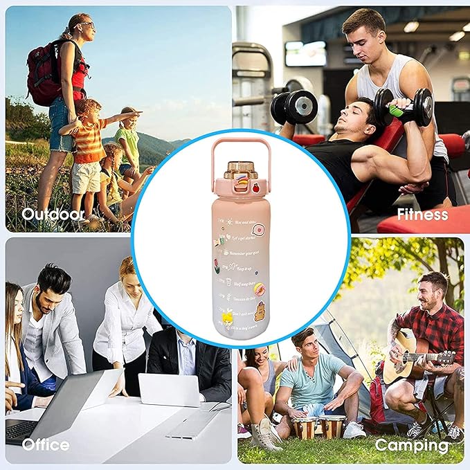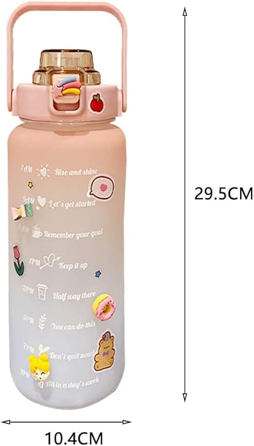 2 litre pipetli su şişesi, zaman işaretleri ve çıkartmalı motive edici su şişesi, tatlı su şişesi, sızdırmaz spor şişesi, kadınlar için, fitness, kamp, sporlar için