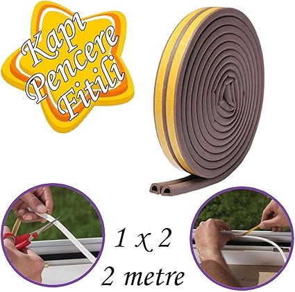 2 METRE (1×2=2 Metre) Yapışkanlı Kahverengi Kapı Pencere Bandı Fitili Soğuk İzolasyon Kauçuk Bantları