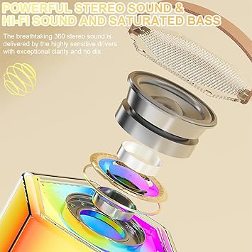 Kablosuz iletim, yaygın olarak uyumlu: Hoparlör Bluetooth 5.3 ile uyumludur, Android, Apple, Windows sistemi, cep telefonu, PC, dizüstü bilgisayar ve diğer müzik uygulamaları, çeşitli uygulamalar için destek, TF kart desteği, U disk okuma, hızlı ve kararlı bağlantı.