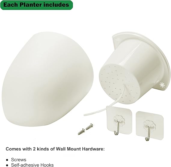 ✜ Duvar Dekoru ve 30 Gün Garanti: şık mat süslü kaygan yüzeyli duvar dekoru saksı tutacağı modern tasarım, şık berrak beyaz, çekici görünümlü, basit ve sanatsal, ev, ofis, mutfak, bahçe, çim ve verandanızı güzel bir şekilde tamamlar. Bu dikey oturma duvar saksısı için yedek parça, duvara monte iç mekan dış mekan asılı çiçek saksıları için onarılmış parçalar veya küçük tembel kendi kendine sulayan saksı, duvara asılan / pencere kutuları için para iadesi garanti süresi içinde kapatılacaktır.