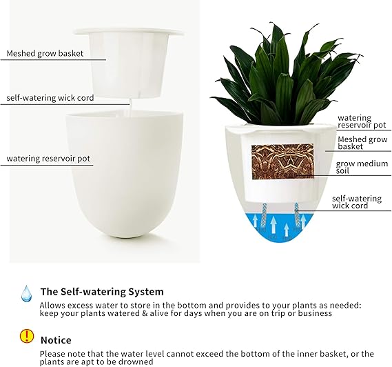 ✜Kendi kendine sulayan yetiştirici: Su bu kendi kendini sulayan saksının altında muhafaza etmesi ve gerektiğinde bitkilerinize sunmak için çift katmanlı duvar köşesi asılı saklayıcı: bitkilerin günlerce ihtiyaç duydukları suyu almasını sağlamak için suyu ve besinleri dış kabın altından otomatik olarak emin ve sık sık sulamanız gerekmez. Bu akıllı dik açı asılı çiçek saksıları birkaç gün dışarı çıktığınızda bitkilerinizi önemsemenize yardımcı olabilir