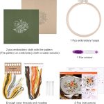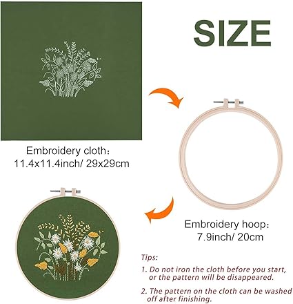 Yeni başlayanlar için nakış seti: Komple nakış başlangıç seti 2 desenli nakış bezi, 1 nakış çerçevesi, 1 makas, 2 kılavuz (Türkçe olmayabilir), 2 renk ipliği ve 6 iğne içerir