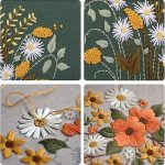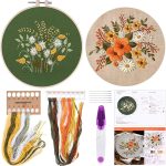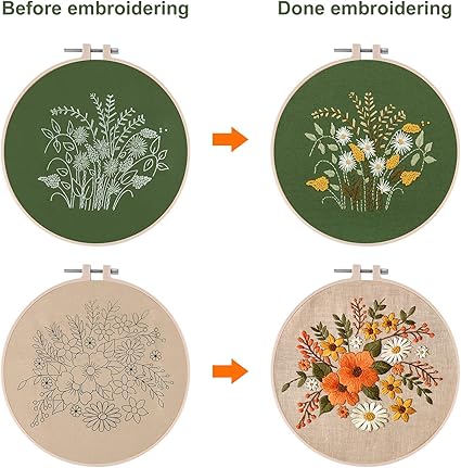 2 set tam aralıklı çıkartma başlangıç kiti, desenli ve kılavuz ile, kanaviçe kiti, 2 adet çiçek desenli nakış, 1 adet plastik nakış çerçevesi, 1 adet makas içerir
