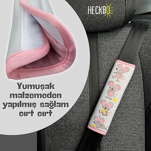 Renkli ve Şık Tasarım: Canlı renkleri ve sevimli fare motifleri ile HECKBO kemer koruyucular, çocukların araç içindeki en sevdikleri aksesuar haline gelir. Hem şık hem de fonksiyonel bir seçim!