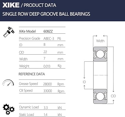 20 Adet 608ZZ Çift Metal Conta Rulmanları 8x22x7 mm, Önceden Yağlanmış ve Stabil Performans ve Maliyet Etkili, Derin Yivli Bilyalı Rulmanlar.