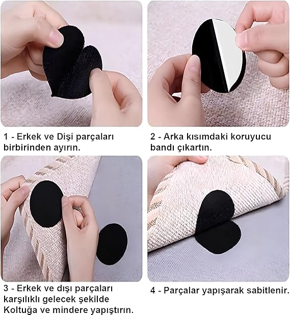 ✅ GENİŞ KULLANIM ALANI: Halılar, kilimler, masa örtüleri, koltuk ve kanepe gibi birçok yüzeyde güvenli ve stabil kullanım sunar.
