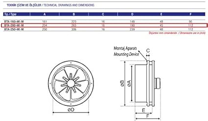 20 cm çapında BTA-200-4K-M 1400 D/D 220 230 volt Monofaze Baca Tipi Aspiratör Aksiyal Aksiyel Fan