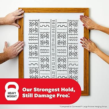 MAKSİMUM ÇERÇEVE BOYUTU 50 X 96 İNÇ: Bir paket Komutun 10 çift (topl 20 şerit) içerir 20 lb X-Large Ağır Resim Asma Şeritleri; dört duvar yapışkanlı şerit çifti (sekiz şerit) 9 kg tutar; maksimum 24 x 36 inç çerçeve