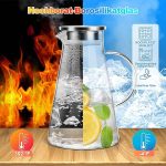 Dayanıklılık ve güvenlik için üstün malzeme: SUSTEAS su sürahisi, -20 °C ~ 150 °C / -4 °F ~ 302 °F sıcaklıklara dayanabilen ısıya dayanıklı borosilikat camdan yapılmıştır. Kurşunsuz ve BPA içermeyen yapısı sayesinde günlük kullanım için sağlıklı bir seçimdir. Buzdolabında (bazıları geçerlidir) ve ocakta kullanılabilir (düşük ısı)